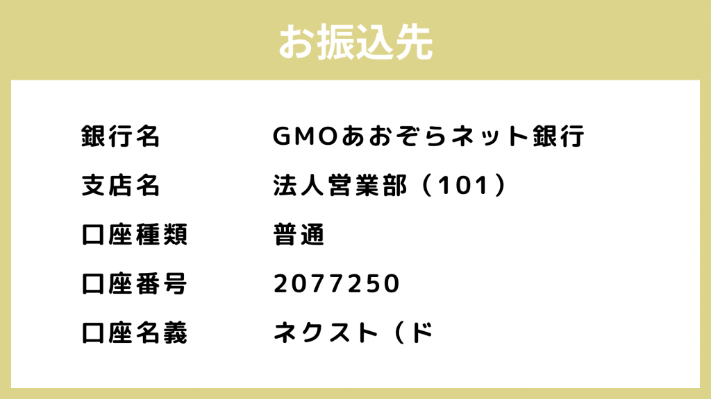 現金振込でのお支払いの場合